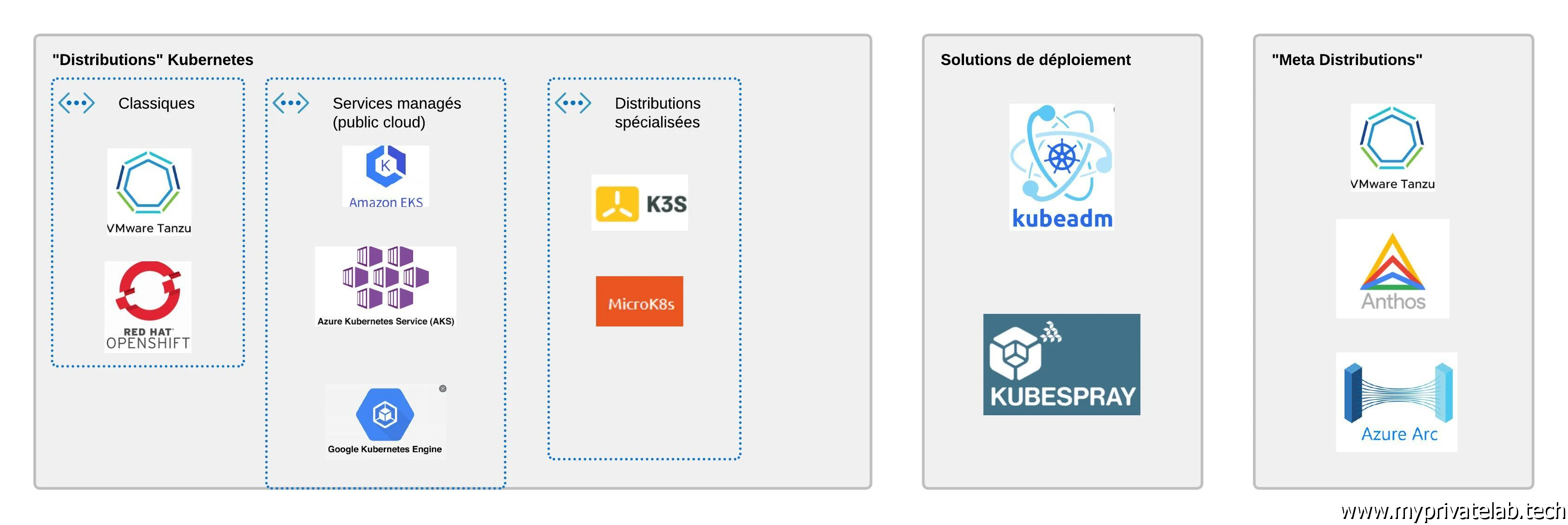 Certains éditeurs proposent un assemblage de ces composants avec une gestion automatiséee du versionning et des addons, ajoutant un support pour les entreprises: on parle alors de distribution Kubernetes.